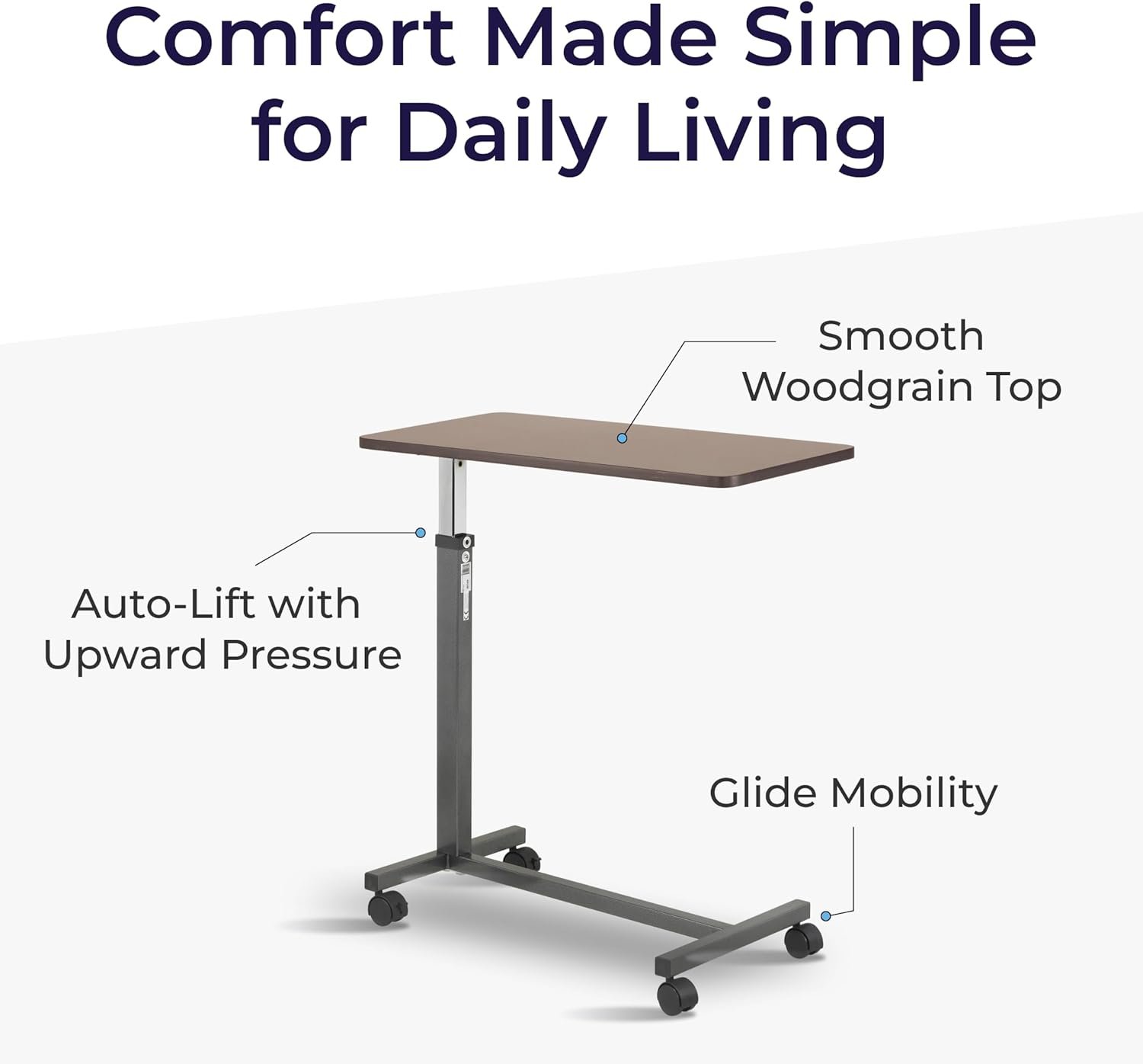 - Height Adjustable Mechanism: Quickly adapts between 28 and 45 inches, supporting both beds and wheelchairs for seamless bedside use.