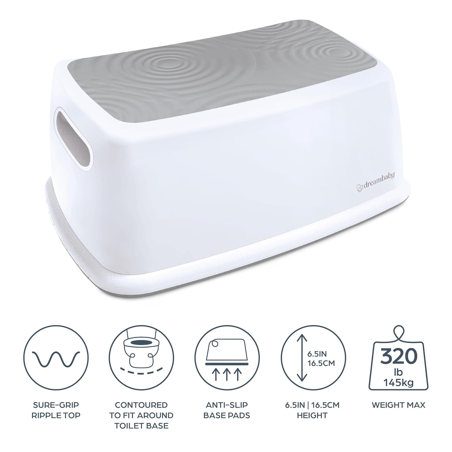 The Dreambaby Toddler & Me Step Stool Potty Seat Training Aid is a versatile solution designed for both kids and adults, supporting up to 320 lbs. With its anti-slip Sure-Grip ripple texture and sturdy non-slip base pads, it ensures safety and stability in any environment. Perfect for toilet training, hand washing, or kitchen help, this step stool encourages independence for your child while offering reliability from a trusted brand. Its contoured shape fits most toilet bases, making it an essential addition to any family home.